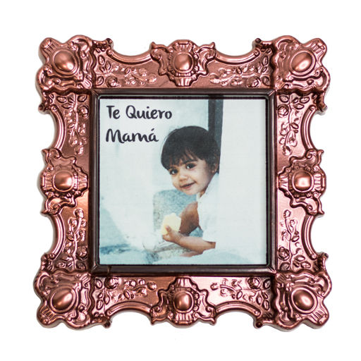 Marco de fotos de chocolate de 15,5cm x 15,5cm y 17mm de grosor con una imágen personalizada.