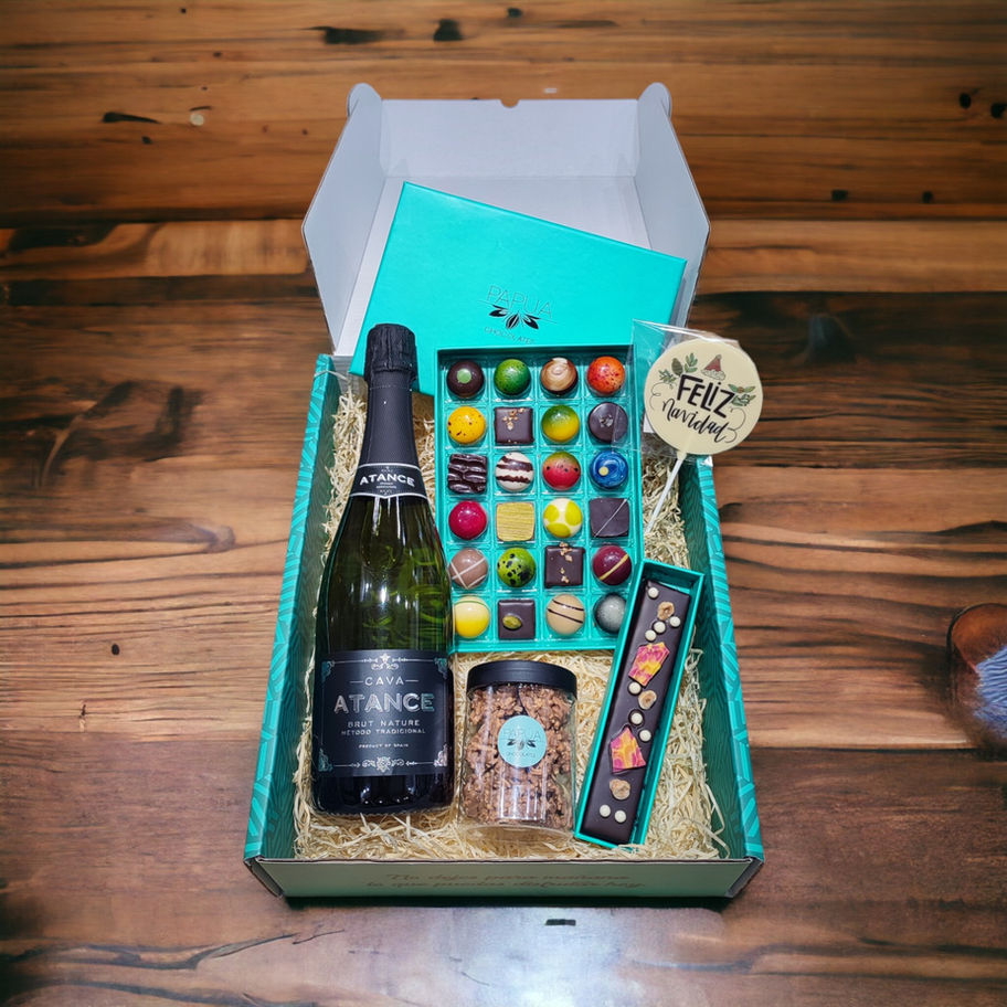 Este distinguido paquete presenta una botella de cava Atance, añadiendo un toque de elegancia a tus celebraciones.
