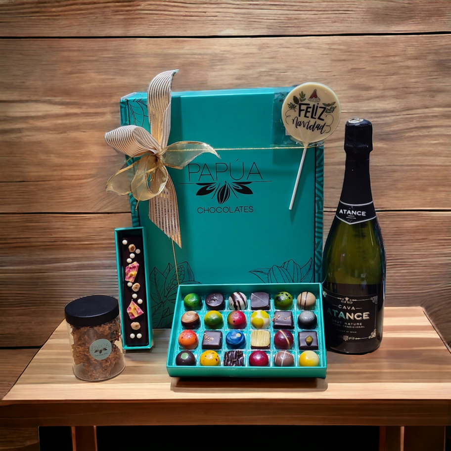 Este conjunto de excelencia se presenta con esmero en una caja de cartón premium, destacando el compromiso de Papúa Chocolates con la calidad y la experiencia distintiva. Celebra la Navidad con este regalo que encarna la sofisticación y el placer de los verdaderos amantes del chocolate.